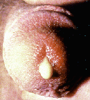 Pemeriksaan fizikal faraj wanita dapat mengesan kehadiran keputihan kuning / kehijauan. Manakala lelaki pula pengeluaran lendir kuning dari penis.