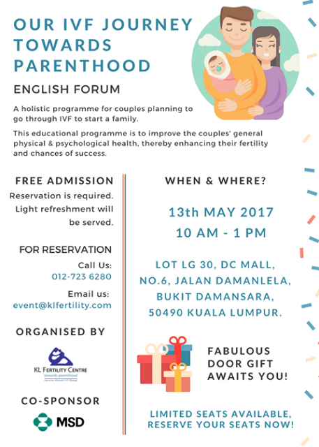 Seminar IVF Journey Percuma pada 13 Mei 2017 di KL Fertility Centre